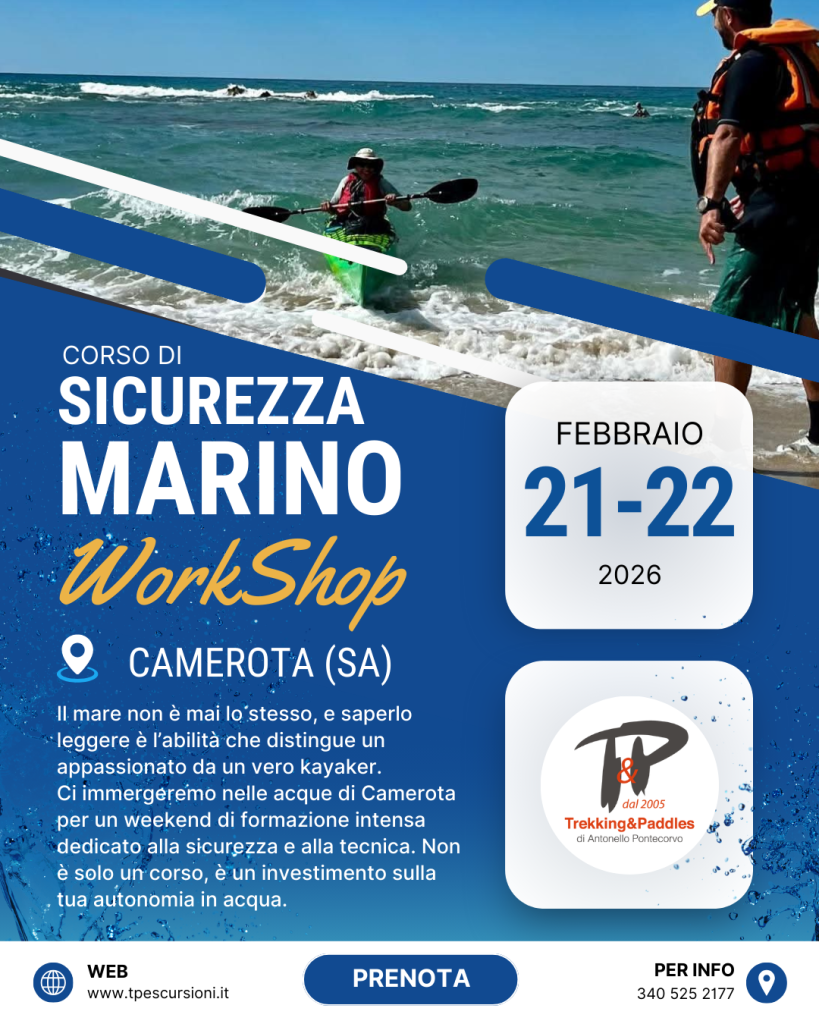 Prezzo: 200€ (lezione on line + 2gg full) con sconto di 100€ per i soci delle asd “Paddling in South Italy” (asd Campania Adventure, Matese adventures, e Circolo Alimuri) e per chi ha frequentato l’ultima certifcazione SK in data 24 e 25 Gennaio 2026.